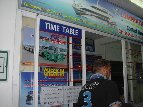 チュムポン駅からタオ島までは、LOMPRAYA(ロンパラヤ)社という会社が運行しているバス+フェリーのツアーを利用するのが一般的だ。