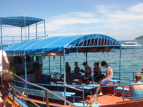 このツアーは、小型フェリーでタオ島のシュノーケルポイント3箇所と、国立公園に指定されているナンユアン島に行くツアーで、ランチ用お弁当も含まれている。